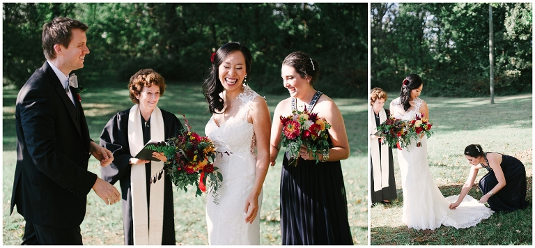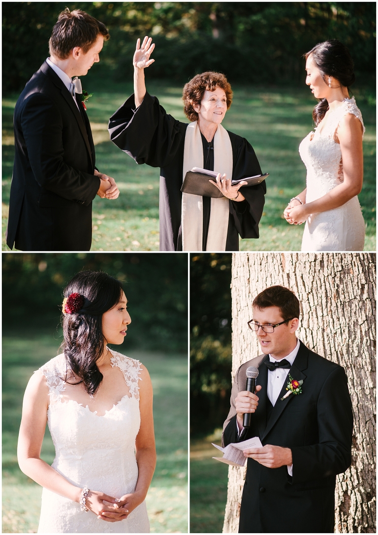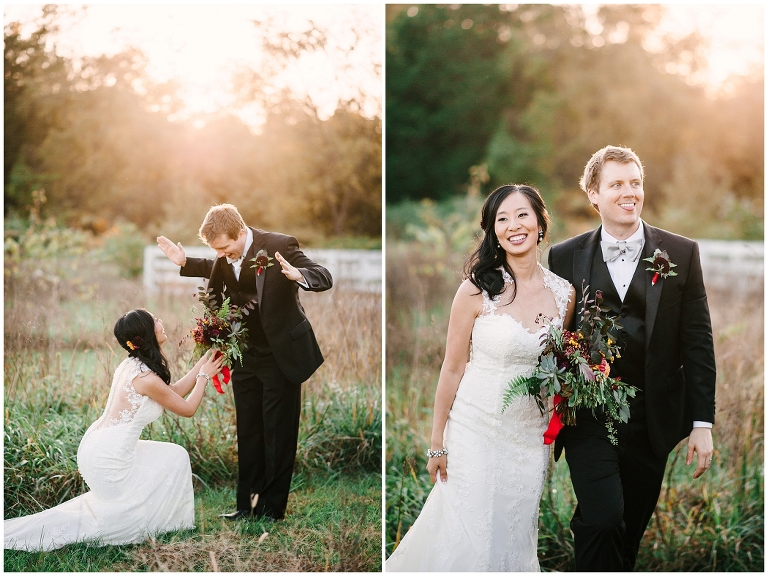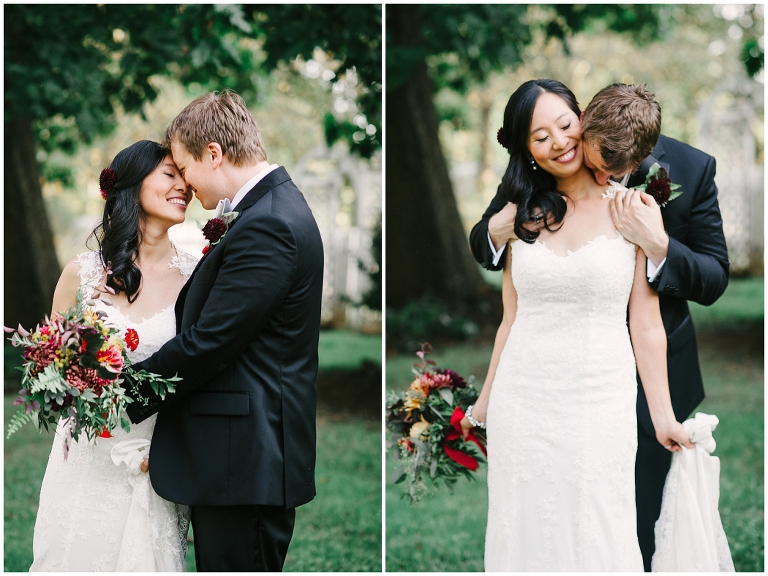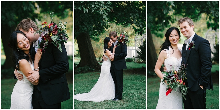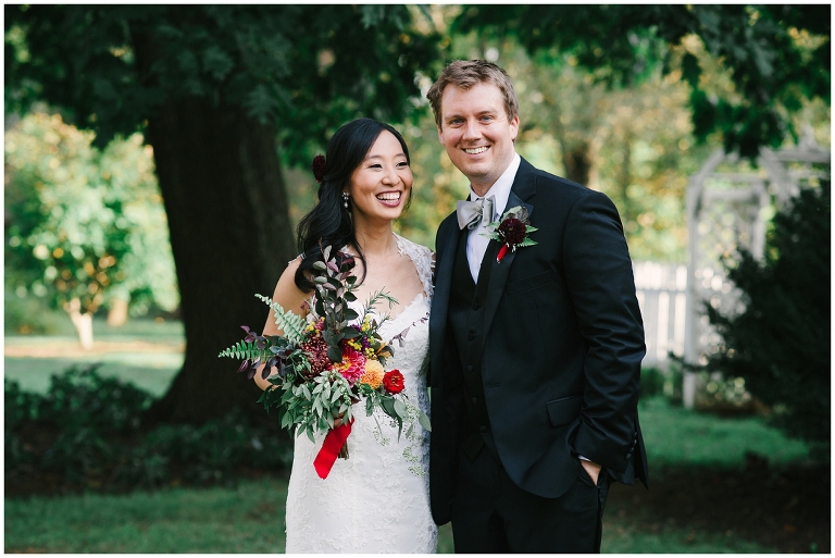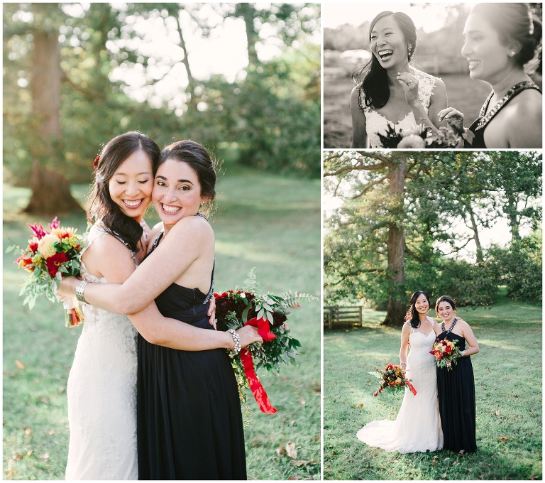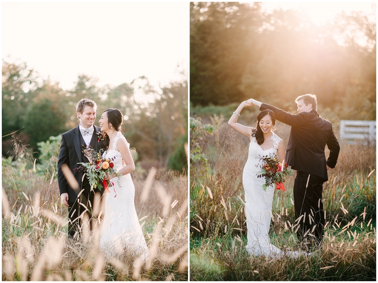 Wei and Brian are one of the most adorable, corky and breathtakingly beautiful couples you’ll ever meet. They were giggling and being goofy nearly every moment. Whether we were posing for portraits or I was sneaking up on them through the bushes. They met through a mutual friend at Yale University as grad students and were in schools across the street from each other. Brian proposed in DC underneath large trees in the Senate Garden. Which brings me to one of the many reasons they chose Inn At Westwood Farm as their wedding venue, with its many large trees with limbs that embrace light and the country surrounding it. Their wedding was a medley of rustic elegant, natural touches and traditional Chinese decorations. Everything so seamlessly telling their sweet story.