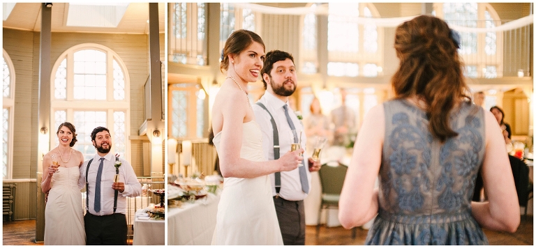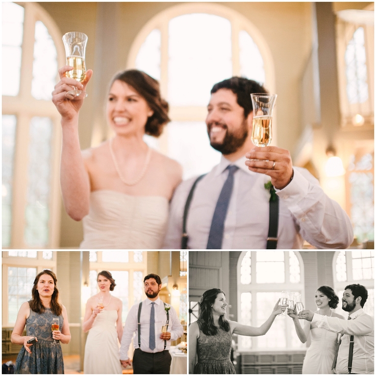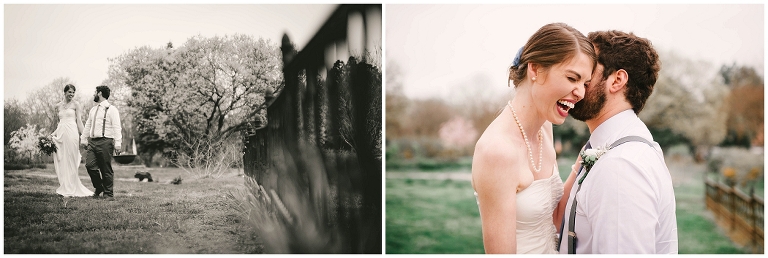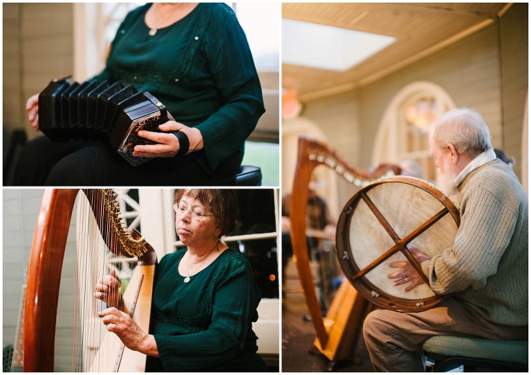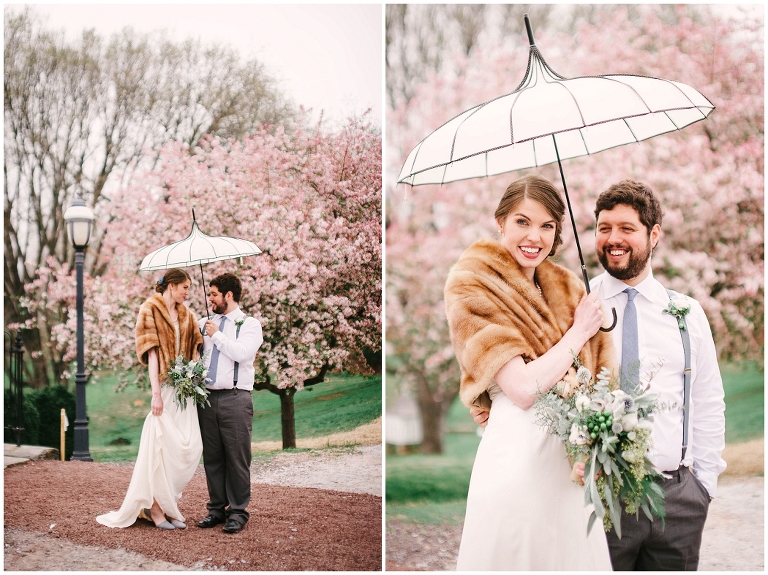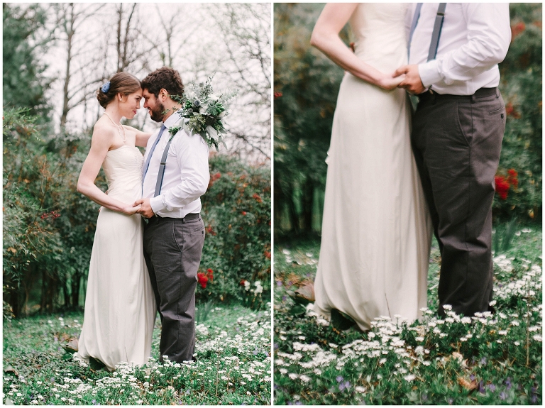 Carolyn and Klaus’ wedding in Lynchburg was, I’m quite certain, one the most creative and full of heart weddings I’ve ever witnessed. It was a rainy day, which added so much to the enchanting charm, I’m convinced life arranged it that way intentionally. Eclectic details made for such a fun, bright and classic aesthetic. Classic, vintage and rustic details adorned Carolyn and the beautiful space chosen to celebrate their love. A few of my favorite details : The flowers were DIY by the bride’s sister, arranged elegantly with wild greens and fresh full blooms. The intimate family style was placed with mix and match china plates. A talented Celtic band serenaded the cocktail hour and a salsa instructor gave the guests a little dance lesson proceeded with lively dancing (I super impressed how quickly everyone picked it up).