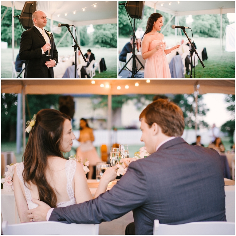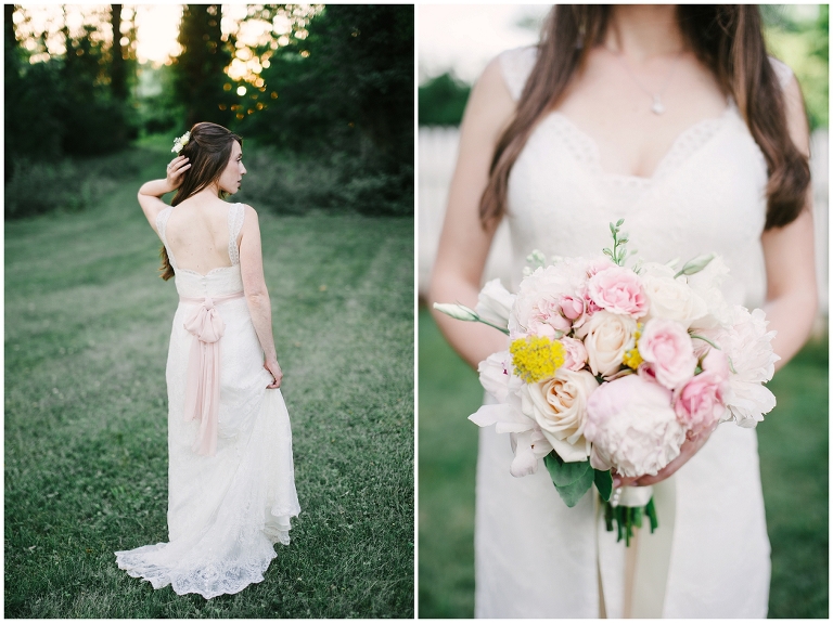 Yet again the Inn At Westwood Farm did not disappoint. Between the cozy, rustically elegant inside to the wide expansive grounds, every moment contained within it was breath-taking. The ceremony took place in the front yard of the Inn in front of a gorgeous tree. Cocktails followed at the barn, and the reception was held under a tent on the grounds. Every single detail from the gorgeous floral arrangements all the way to her blush bow on her dress was executed with perfection. The sages, yellows and pinks were in perfect hardmony with one another. I was just amazed and in awe of the talent of all the vendors.