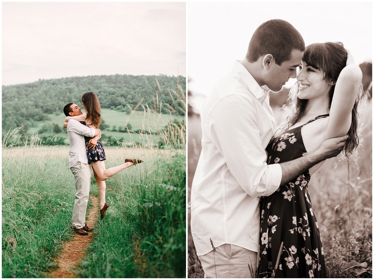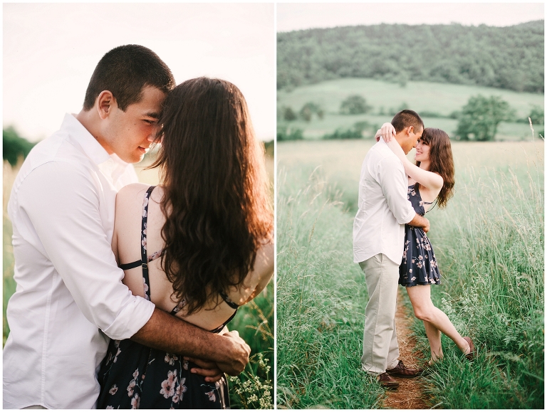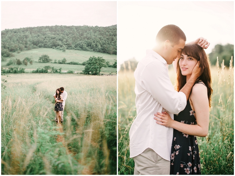 Upon a gorgeous mountain top on the Blueridge parkway I witnessed a deep magical love from Molly and Josh. Sessions like this are what make me come alive and remind me that my job is the best possible career I could ever dream of. There’s something about being in the depth of nature, with amazing people in the midst of a clean refreshing breath of wind that resonates with my heart. These two seemed intertwined in the scene unfolded before you. Seamlessly patched into the framework of this perfect scenery. Their romance just as radiant as the golden sun setting behind them. Molly looked to have stepped out of a dream and likewise her boyfriend Josh was as handsome as they come. Together they make such a beautiful pair, it’d be impossible to conjure up a more perfect couple.